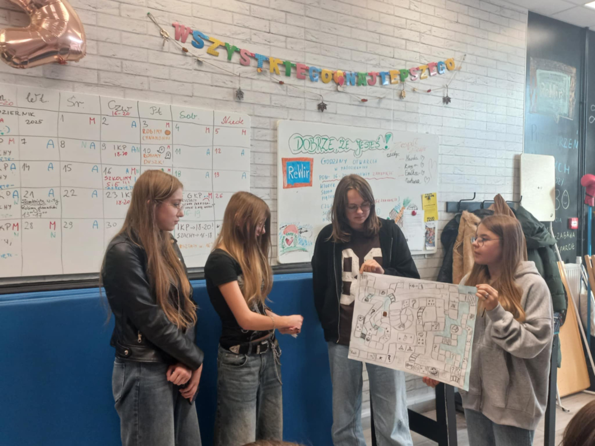 W ramach inicjatywy uczniowie uczestniczyli w warsztatach gier planszowych w Lublinie, przygotowali autorskie gry planszowe oraz zagospodarowali przestrzeń na korytarzu szkolnym, która zachęca do grania